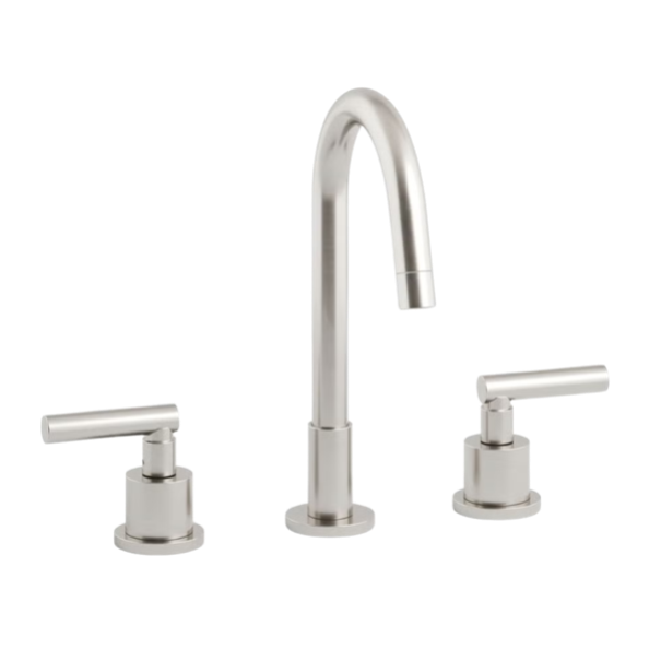 Brushed nickel pairs beautifully with Rockmount Arctic Golden 6x24, due to its cool metallic finish balancing the warm and textured stone for a luxury spa-look.